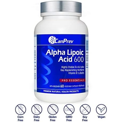 CanPrev Alpha Lipoic Acid 600 | 60 v-caps l With Key Replenishing Nutrients B1