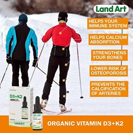 Certified Organic Vitamin D3 & K2 (MK7-Natto) – 490 Drops- Support Your Bones