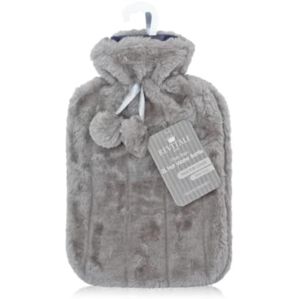Revitale Luxury Cosy Faux Fur Pom Pom Hot Water Bottle – 2 Litre (Slate Grey)