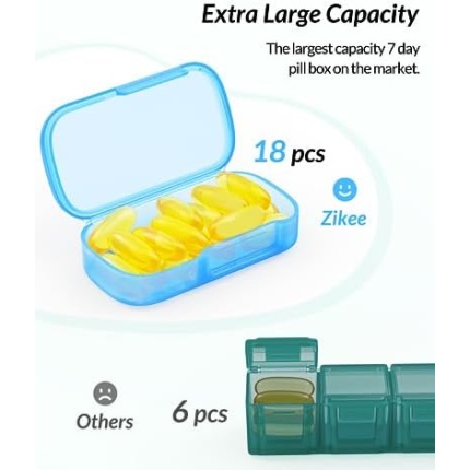 ZIKEE 7 Packs Extra Large Pill Organizer, Portable Pill Box 7 Day for Pocket