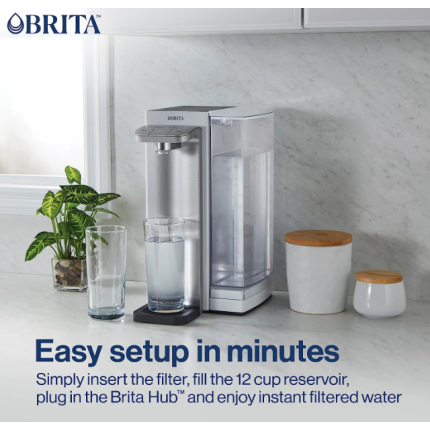 Brita Hub Instant Powerful Countertop Water Filter System, 12 Cup Water Reservoir, Includes 6 Month Carbon Block Filter