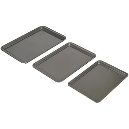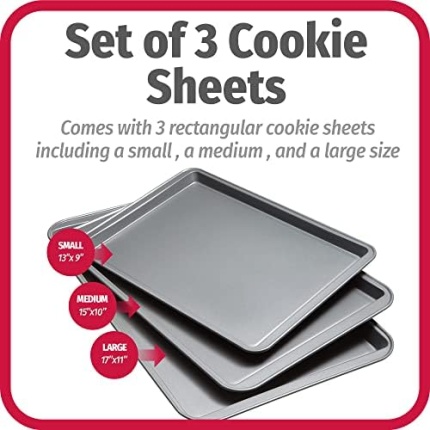 GoodCook Nonstick Steel 3-Piece Cookie Sheet Set, Gray, Small, Medium, Large