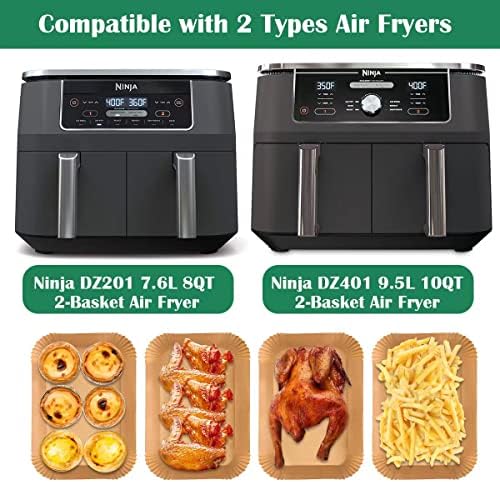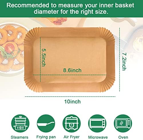 ✅【Food Grade Material】Our rectangle air fryer disposable paper liners are made of food-grade unbleached parchment paper with double-sided silicone oil coating, no fluorescent, BPA-free to strict quality standards. High temperature resistance up to 428 degrees Fahrenheit, maintaining integrity and aesthetic appearance of bread, dumplings, snacks. Oil proof parchment paper liners are no affection to the taste of food and the hot air circulation of air frying.