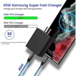 • One Fits All: – This portable 45W USB-C Charger pack is broadly compatible with almost any personal devices from phones, tablets to laptops, and especially, provides optimized charging for Samsung, [45W Super Fast Charging 2.0]: Samsung Galaxy S22 Ultra/S22 Plus/S20 Ultra/Note 10 Plus, Galaxy Tab S8/Ultra/S7/Plus; [25W Super Fast Charging 1.0]: Samsung Galaxy S23/S22/S21/S21+/S21 Ultra/FE 5G/S20/S20+/Note 20 Ultra/A71/Z Fold 4/Z Flip 4; [PD Fast Charging]: MacBook Air, iPad, iPhone, Switch…
