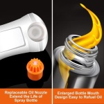KEEP NOZZLE FROM CLOGGING:Oil spray bottle with 2 removable nozzles, which can be changed at any time.