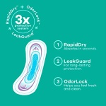 Absorbs 90% faster than the leading store brand with Always RapidDry* Technology