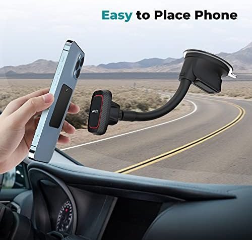 • Super Strong Suction Cup – The upgraded suction cup makes this car phone mount more reliable and stronger. With an extra sticky gel pad under the suction cup, this magnetic car mount can stick firmly in place even through the bumpy road, leaving no residue, and providing stronger suction power on your car mount whether dashboard or windshield. (Please avoid exposing it to the sun at high temperatures for a long time)