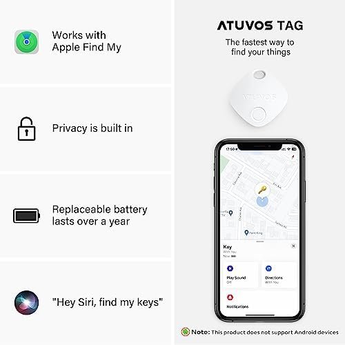 ATUVOS Key Finder, Bluetooth Tracker Works with Apple Find My (iOS only), IP67