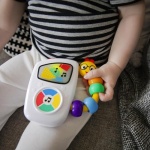 The award-winning Baby Einstein Take Along Tunes Musical Toy is made for little maestros. This handheld musical toy has sold over 30 million units worldwide and will quickly become a favorite for hours of entertainment. Babies can use the large button to toggle through 10 recreated classical masterpieces from Chopin to Mozart and more. Colorful lights dance across the screen to the rhythm of each melody, to captivate your baby and encourage both auditory and visual perception. Includes volume control. Easy to grasp and hold. For ages 3+ months.