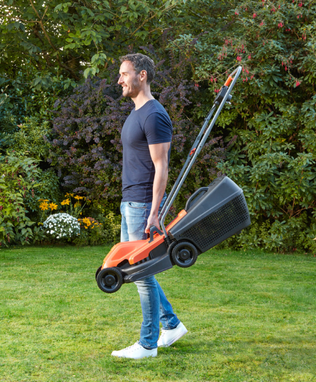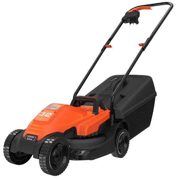 Powerful 1200W 32cm Black & Decker mower. Ideal for smaller lawns up to 300m², equivalent to approximately 1.5 tennis courts. Lightweight, compact mower that is easy to use and store away. Increase productivity with the 35L collection box, allowing more grass to be collected and reducing the time spent emptying. The intuitive Full Bag Indicator tells users when the bag is full and ready to empty. Features simple height change lever on wheel axel for the perfect finish every time. Integrated handle on deck makes the unit easy to carry.