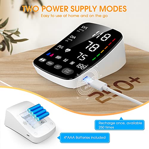 [Portable and Rechargeable] Choose between charge via USB cable or using AAA batteries to power your device (batteries and AC adapter not included0. Dual power supply gives you more options for home, work, or leisure use. Comes with a convenient carrying pouch that holds the blood pressure monitor, large arm cuff, and USB cable