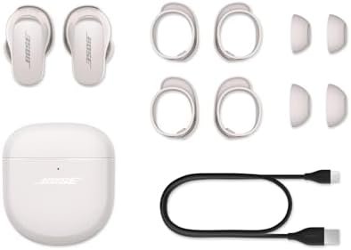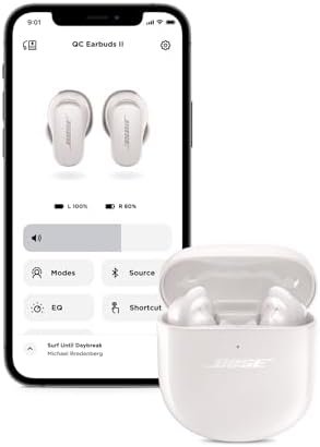 • LONG LASTING BATTERY: Stay absorbed in the music you love for up to 6 hours. When not in use, store your Bose QuietComfort Earbuds II in the portable charging case — it’s small enough to fit in your pocket. If the battery gets low, voice prompts let you know. Out of power and don’t have enough time to fully charge? The quick-charge option provides up to 2 hours of battery life from a 20-minute charge.