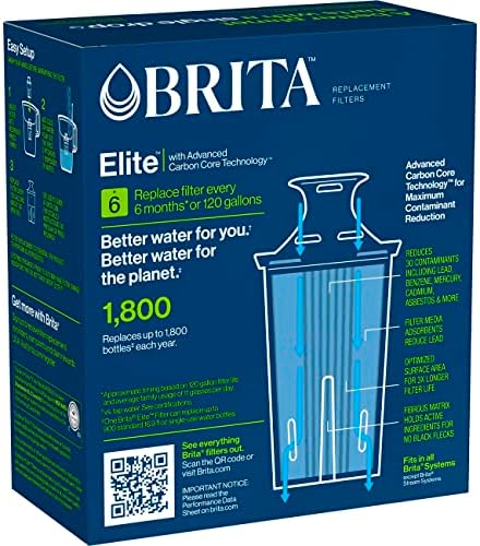with Brita Elite water filter replacements; you can save money and replace 1,800 single-use plastic water bottles