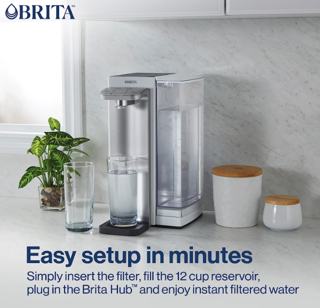 Brita Hub Instant Powerful Countertop Water Filter System, 12 Cup Water Reservoir, Includes 6 Month Carbon Block Filter