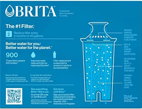 For the best tasting water, replace your water filter after 151 litres or approximately every 2 months; Brita Standard filters last 2x longer than ZeroWater filters.