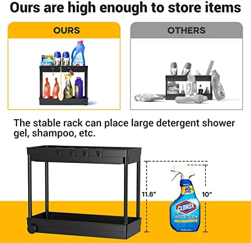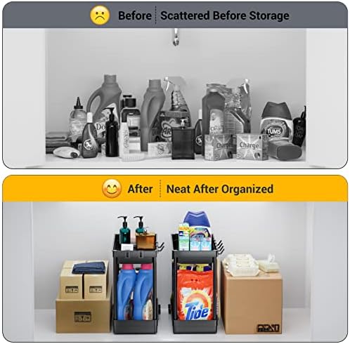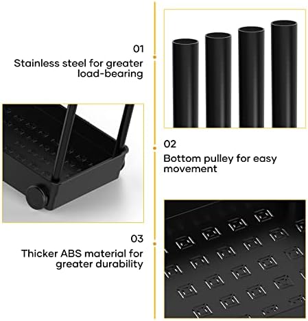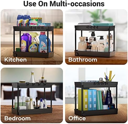 Sturdy and durable structure: the kitchen cabinet organiser is made of high-quality ABS plastic, and the 4 support tubes are painted and thickened steel tubes, which have good rust resistance and strong load capacity. The additional 4 hooks give you more hanging space.