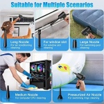 • Multiple Nozzles & Wide Application: BOLNGLA computer air duster comes with 5 sets of nozzles, meeting different needs. Suitable for dust removal of computer cases, keyboards, cars, fans, lily windows, etc. The multifunctional nozzle is used to inflate swimming rings, yoga balls, steamboats, air mattresses, inflatable toys, etc.