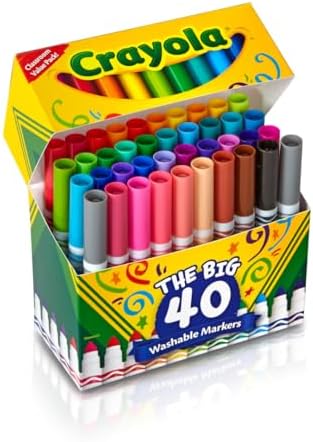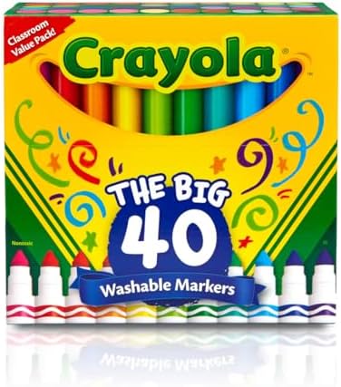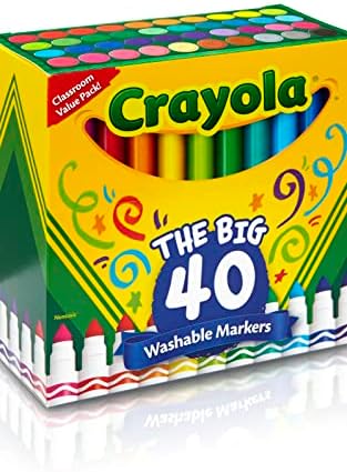 CRAYOLA BROAD LINE MARKERS: Features 40 Crayola Ultra Clean Washable Markers in assorted colors that offer practicality, versatility, and creativity all in one package.