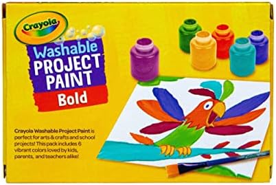 Crayola Washable Project Paint is perfect for creating kids projects, crafts supplies and everyday use. Vibrant, smooth, creamy colors easily blend to create even more hues. Resealable caps ensures paint stays as good as new. School-aged children can get a jumpstart on their school projects with this set of bold colors, which encourage creativity and fun. Crayola Washable Project Paint inspires young artists while parents remain confident that clean-up will be a breeze when the work is done. This set includes Washable Project Paint in 6 bold colors: Yellow, Green, Yellow Orange, Red Orange, Fuchsia, Teal, and Blue Violet. Safe and nontoxic. Ideal for kids ages 3 and up.