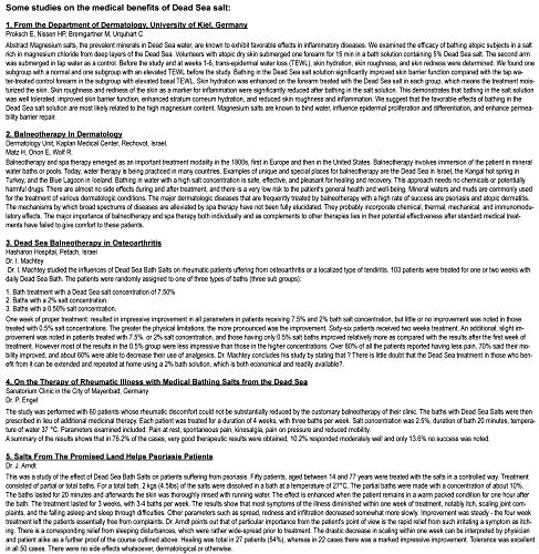 PSORIASIS, ECZEMA, ACNE, SKIN CONDITIONS: Dead Sea treatment studies show significant improvements