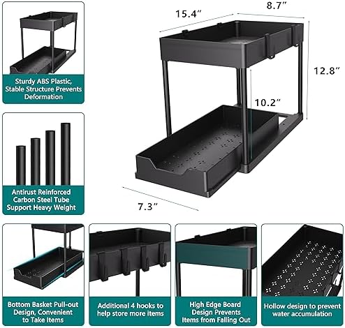 Large Capacity – Bottom area holds items height up to 10.3 inches. Size: 15.4″L x 8.7″W x 13.0″H, Drawer Width: 7.25”- 8.7″.