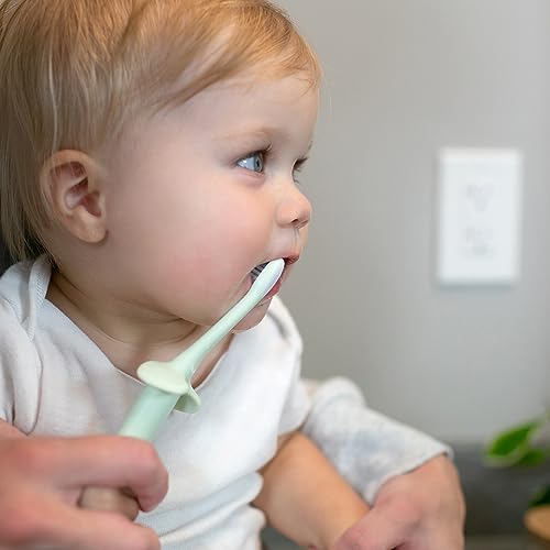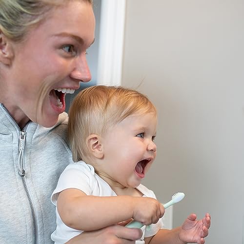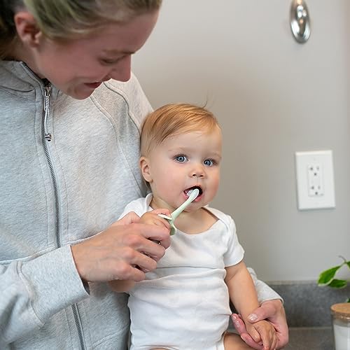 LEARN TOOTHBRUSHING SKILLS. Training toothbrush is sized just right for small mouths and little fingers to help baby build the skills they need to reach independent brushing.