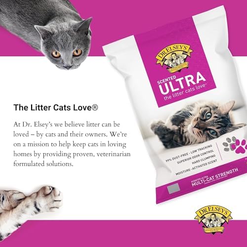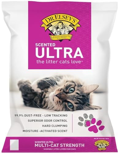 Dr. Elsey’s Ultra Scented Litter is a unique formulation that combines the heavy non tracking granules of the Classic Litter with a medium grain clay. The result is an excellent clumping litter that prevents moisture from reaching the bottom of the tray, while providing a clump that will not break down. Ultra is perfect for multi-cat families and those cat owners with sifting or mechanical litter boxes. Superior odor control. Ultra Scented contains a moisture release fresh scent. There is no scent until after the litter is used.