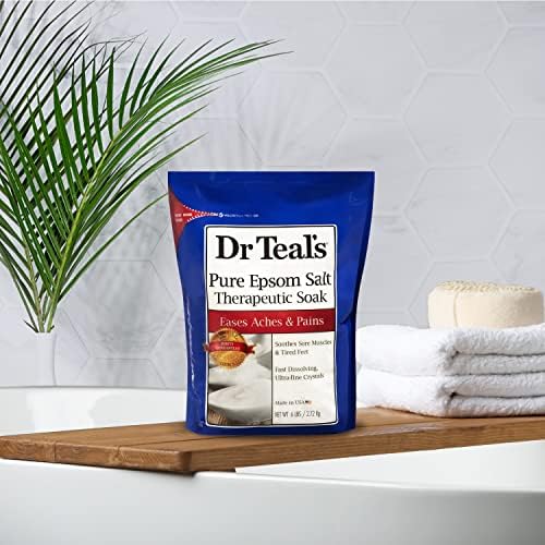 Soak in Dr Teal’s Fragrance Free Therapeutic Pure Epsom Salt Soak for a calming, soothing bath. Made with pharmacy-grade magnesium sulfate, this Pure Epsom Salt contains therapeutic qualities that help soothe sore muscles, relieve stress, and soften skin as well as reduce swelling from minor sprains and bruises. This Pure Epsom Salt Soak comes in a convenient, resealable 6 lb bag. Take a moment for yourself tonight so you can feel your best tomorrow.