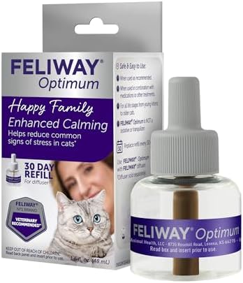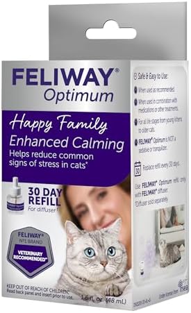 FELIWAY Optimum is a new pheromone discovery, and the best FELIWAY answer to help reduce common signs of stress in cats such as: scratching, urine spraying, tension and conflicts between cats, fears, and reactions to changes