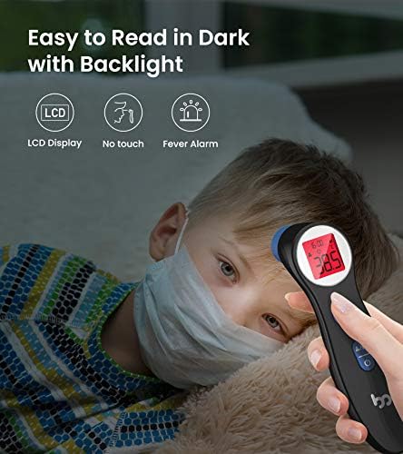 [Fever Alarm with Backlight] The forehead thermometer consists of a big LCD screen with 3 backlight indicators (green, yellow and red). The red screen is considered as abnormal temperature which is accompanied by warning sound.