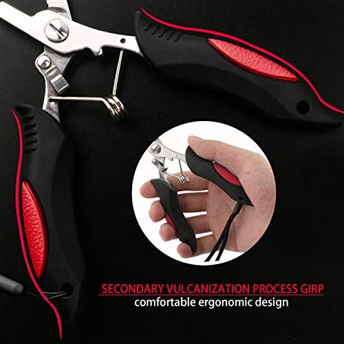 NON-SLIP RUBBER HANDLE: Fishing pliers with ergonomic texture rubber handle, provide a firm hold to grip when removing hook and split ring