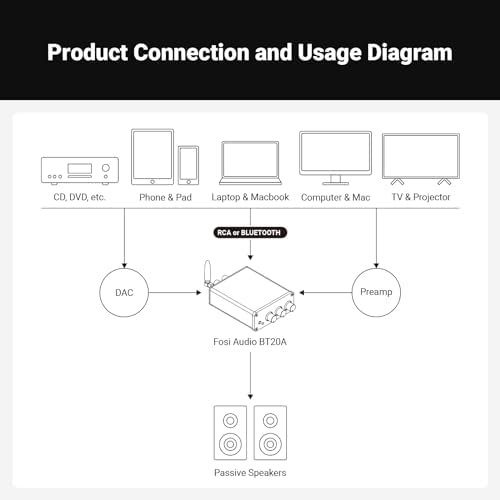 • Bluetooth 5.0 Amplifier: Featuring two Texas Instruments TPA3116D2 chips, the BT20A delivers powerful and clear stereo sound. The TPA3116D2 is a highly efficient digital amplifier with an advanced oscillator/PLL circuit, ensuring minimal interference and offering a robust connection range of up to 50 feet.