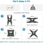 • Friendly After-sales Service – our corner tv wall mount is constructed from high quality steel materials, we are so confident in the construction, strength and durability of this wall bracket that we are provide 5-year friendly customer service. Please feel free to contact us anytime, rain or shine:-)