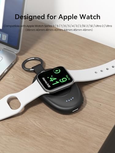 • Charge On the Go: This wireless charger for Apple Watch boasts a compact and portable design, making it effortless to store and convenient to carry with you wherever you go. Additionally, the inclusion of a keyring allows for easy attachment to your bag or backpack. Perfect for using at home, office, business trips and travels. Package Include: 1* Portable Charger for Apple Watch; 1* USB-C to USB-A Charging Cable; 1* User Manual.