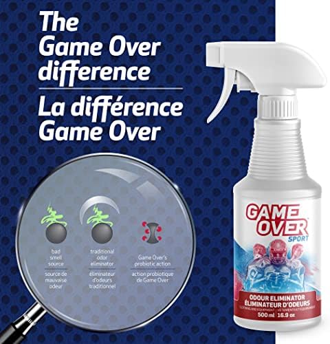 Game Over Sport eliminates foul odours coming from footwear, sport equipment, carpets and clothes. Instead of concealing bad smells like most products, it destroys them at their source. Perfect for athletes of all calibers, Game Over Sport is an efficient solution for sport gear & apparel hygiene.
