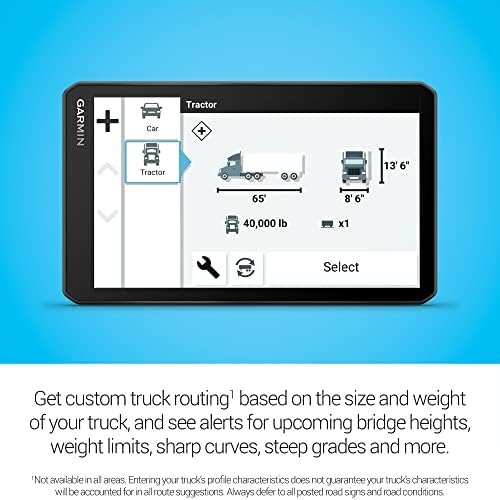 • Get custom truck routing (Not available in all areas. Vehicle characteristics may not be accounted for in all route suggestions. Defer to posted signs and road conditions.) based on the size and weight of your truck, and see alerts for upcoming bridge heights, weight limits, sharp curves, steep grades and more