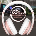 • The charge lasts a long time: Wireless headphones 500mAh battery,Up to 65 hours of continuously playtime in wireless mode, no need to worry about running out of power,perfect for long trips.With upgraded Type-C charging cable, studio headphones can be fully charged in 2.5 hours(10mins equals 4 Hours using time).Headphone comes with a 3.5MM audio jack,allowing you to switch to wired modes.