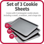 Bring high-quality bakeware to your home kitchen with the GoodCook 3-Piece Cookie Sheet Set. Designed with home bakers in mind, this set includes small (13″” × 9″”), medium (15″” × 10″”), and large (17″” × 11″”) sized cookie sheets to provide the perfect option for all of your baking needs. These cooking sheets distribute heat evenly for thorough baking, and the scratch-resistant, dishwasher-safe nonstick coating provides excellent release while also making clean up quick and easy. They are also metal spatula safe so you can serve your baked goods right off the sheet. These nonstick cookie sheets are made with heavy duty gauge steel with a gray finish to offer high quality baking for years to come. For over 30 years, GoodCook has created the tools that have made life in the kitchen easier and more enjoyable. As we’ve grown, we strived to stay on trend and continually incorporate more function and value into our kitchenware products. We take pride in the fact that GoodCook products are being used every day, and that our name is recognized as a helpful resource supplying products, recipes and inspiration for home cooks across America.