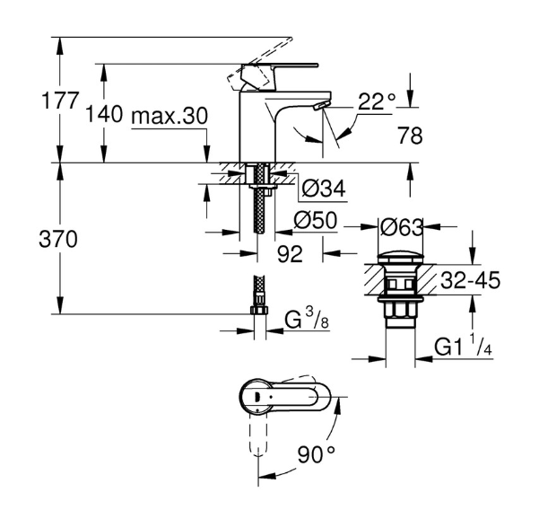 This Grohe Get mono basin mixer tap comes complete with a waste to make emptying your bathroom sink effortless, perfect as an upgrade to freshen up any bathroom. It features the Grohe scratch resistant and easy to clean Starlight finish to ensure a consistent shine for years to come, while the Silkmove cartridge ensures the smoothest of operation for flow and temperature at all times. The Grohe Get bathroom tap features EcoJoy technology which reduces water consumption by up to 50% without compromising on performance.