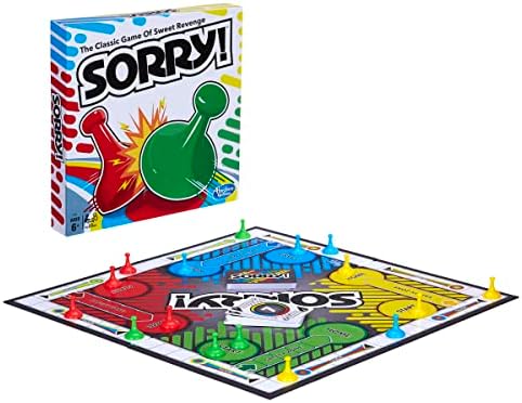 Slide, collide and score to win the Sorry! Game. Kids draw cards to see how far they get to move one of the pawns on the board. If they land on a Slide they can zip to the end and bump their opponents’ pawns – or their own! Jump over pawns and hide in the Safety zone where opponents can’t go. Kids keep on moving and bumping until they get all three of their pawns from Start to Home. But watch out, because if the pawn gets bumped, Sorry! It’s all the way back to Start! Sorry! and all related characters are trademarks of Hasbro.