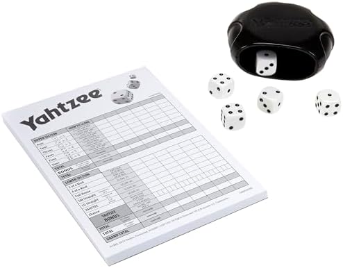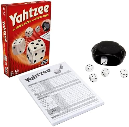 Roll it to the limit for the ultimate win with the Yahtzee Classic game. With a sleek shaker and 5 dice, you’re ready to roll! Take turns rolling dice to try to score combos. You get a total of 13 turns and may roll up to three times on a turn. At the end of each turn, you must fill in one empty box in your column on the score card. The player with the highest grand total at the end of all 13 rounds wins. It’s up to the player whether they hustle for a full house or risk it all for a Yahtzee roll. Show it off, and let the dice fall where they may. Game includes 5 dice and shaker that doubles as storage for easy clean up and travel. Yahtzee is a trademark of Hasbro.