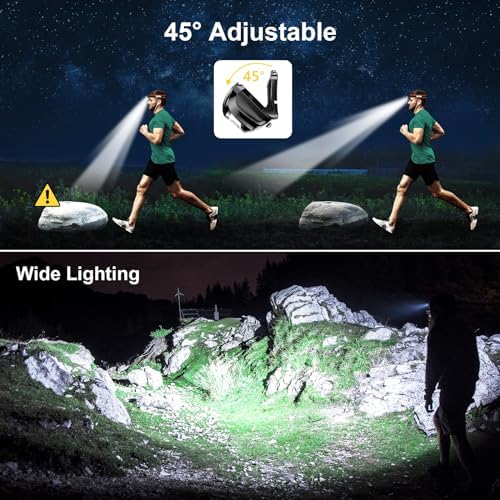 Adjustable & Comfortable: It can be adjusted according to the different head circumference for comfort. Just move the headlight up and down to adjust angle freely and the lamp beam angle can be up to 45¡ã. The veneer position is super firm, not shaking, can meet needs in various lighting environment.