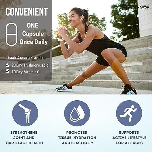 Joint and Bone Health – Hyaluronic acid combined with Vitamin C helps in collagen formation to maintain and develop healthy bones. Helps support joint health.