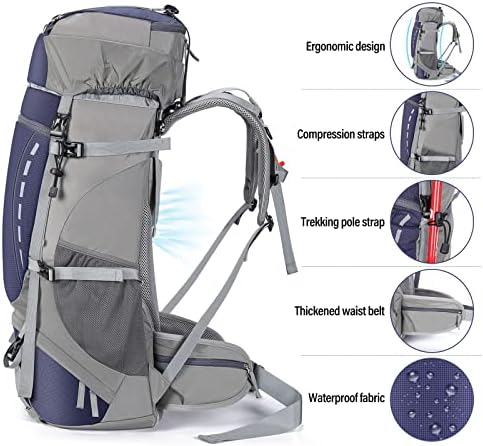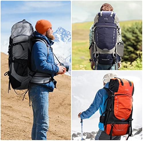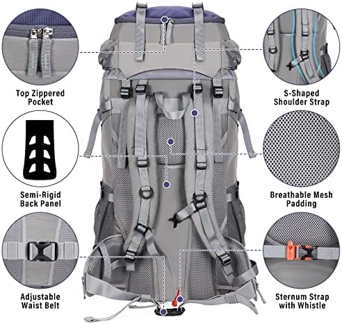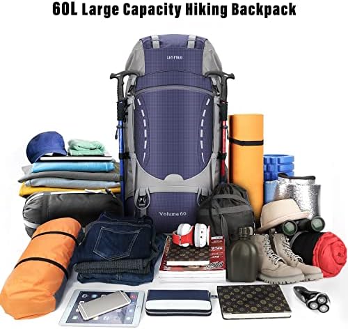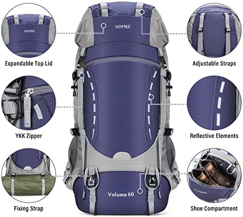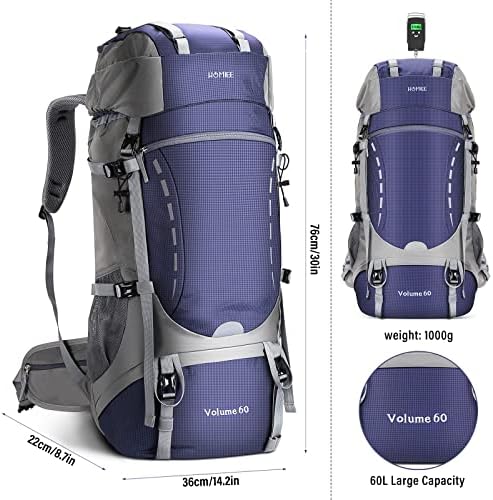 【Comfortable Support Design】 The HOMIEE 60L hiking pack is ergonomically designed with a PE support panel on the back, providing enough support to make you more comfortable when using the pack. Adjustable sternum and waist straps are designed to help distribute the weight. The padded and breathable back and shoulder straps provide good support while ensuring ventilation and breathability.