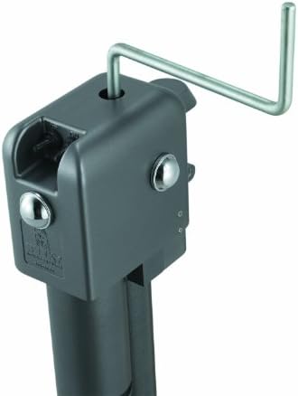 Powered trailer jack with 4,500 pound rating, 12-volt operation, hardened steel gears, and soldered connections