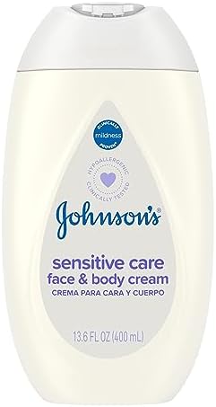Johnson’s Sensitive Care Hypoallergenic Baby Face and Body Cream helps improve your baby’s skin resilience with twice daily usage. To use as a part of baby’s daily skincare routine, gently massage into baby’s skin. Cream suitable for face and body