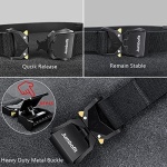 ★【QUICK RELEASE】– Intuitive and smooth quick release functionality when you push the golden tabs down at the same time. If just one tab is engaged, the connection will still hold and fully re-lock on its own.Once tightened the belt does not slip, stays in place, comfortable, and is easy to close and open.