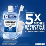 LISTERINE® TOTAL CARE is proven to have 10-in-1 benefits. For Total oral care! Proven to be 5x more effective than floss at reducing plaque*. The formula kills up to 99% of plaque and bad breath causing germs left behind after brushing. Just 30 seconds of rinsing, twice a day. Used twice daily, LISTERINE® Total Care is proven to work in 10 ways to maintain a clean and healthy mouth. Use alongside brushing and flossing. * Germ kill provides sustained plaque reduction above the gumline after a dental cleaning.
