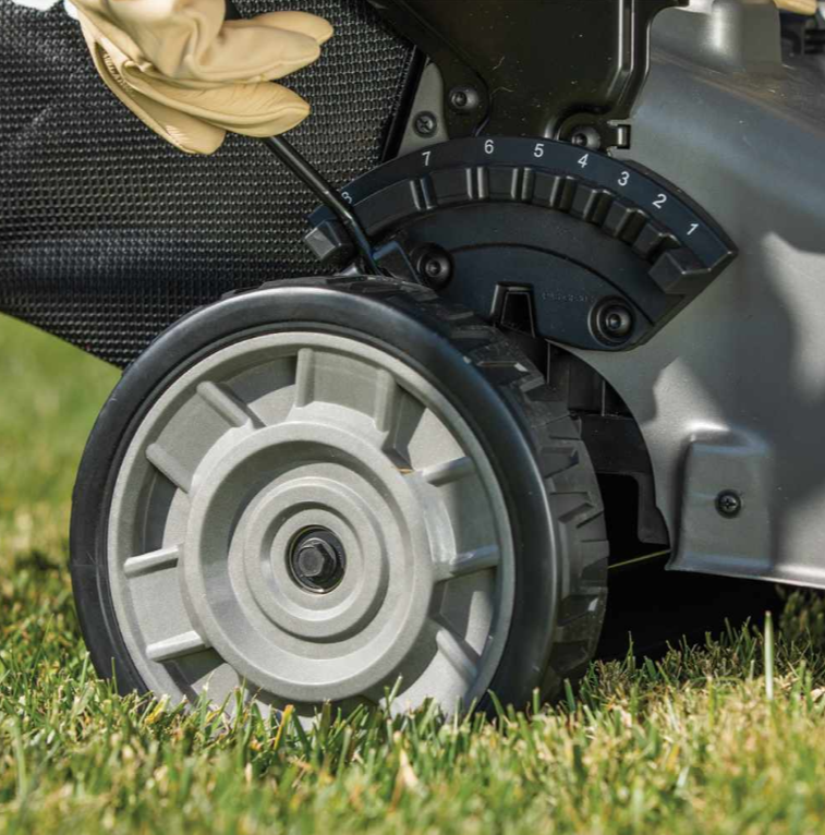 - Cutting height adjustment range: 20 – 100mm, 10 heights
