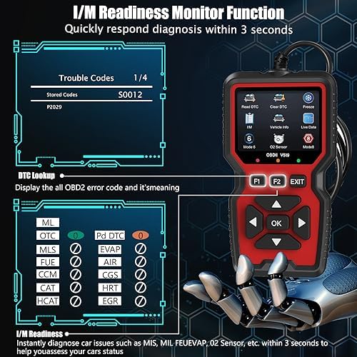 🚗【Professional OBD2 Scanner Diagnostic Tool with Powerful Functions】:OBD2 scanner code reader feature built-in 35901 OBD2 DTCs lookup library, As professional car scanner, the obd2 scanner diagnostic tool will help you to determine the cause of the engine light,📋read I/M readiness, 🔎Read & clear codes, 💡turn off engine light or MIL, ❄view freeze frame, 🚕retrieve vehicle VIN, 🔋battery voltage test, 📈live data stream,O2 sensor test, onboard monitoring mode, and perform component testing etc